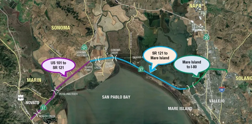 “A State Route 37 fornece uma conexão regional importante ligando o norte, leste e oeste da Região da Baía de San Francisco ao longo da margem norte da San Pablo Bay”, disse um porta-voz do Caltrans, destacando a necessidade de atender à demanda de transporte enquanto se protege o meio ambiente ao redor.