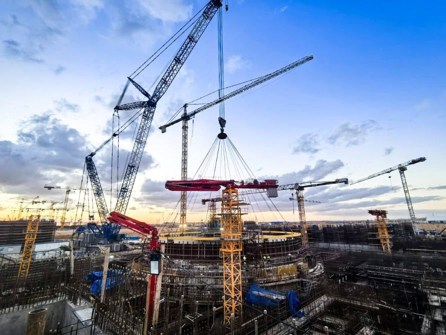 Avanços significativos foram alcançados nas duas unidades geradoras em construção. Em relação à terceira unidade, a concretagem da laje de fundação foi concluída, a construção das paredes e do teto está em andamento, a primeira camada da estrutura de contenção interna (ICS) do prédio do reator foi instalada e a construção do revestimento do poço do reator e da laje de fundação superior está em curso. A Unidade 3 da Usina Nuclear de Daba utiliza a tecnologia patenteada "open-top" da holding, instalando a estrutura de contenção interna como um anel único, com peso aproximado de 150 a 155 toneladas. Este projeto reduz o intervalo de instalação entre a primeira e a segunda camadas da estrutura de contenção, melhorando a eficiência geral da construção. A Unidade 4 está progredindo conforme o planejado, com a concretagem da laje de fundação inferior e a construção do poço do reator.