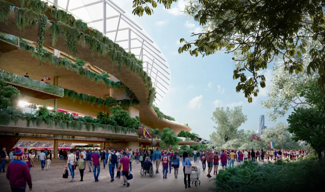 De acordo com as imagens divulgadas, o estádio contará com uma cobertura transparente sobre a estrutura principal, combinada com passarelas sinuosas e terraços com vegetação, alcançando um equilíbrio entre natureza e funcionalidade. No entanto, a construção desta infraestrutura pública também gerou controvérsias: apoiadores elogiam sua inovação no design e planejamento de engenharia, enquanto opositores questionam a racionalidade dos custos, a necessidade de capacidade e a alocação de recursos. Alguns grupos expressam preocupação de que a construção possa prejudicar a ecologia do parque, árvores antigas e o patrimônio cultural indígena, tendo já iniciado ações legais. Segundo informações, o estádio substituirá o plano original de reforma do Estádio de Gabba, tornando-se a sede das cerimônias de abertura e encerramento dos Jogos Olímpicos, com início das obras previsto para 2027.